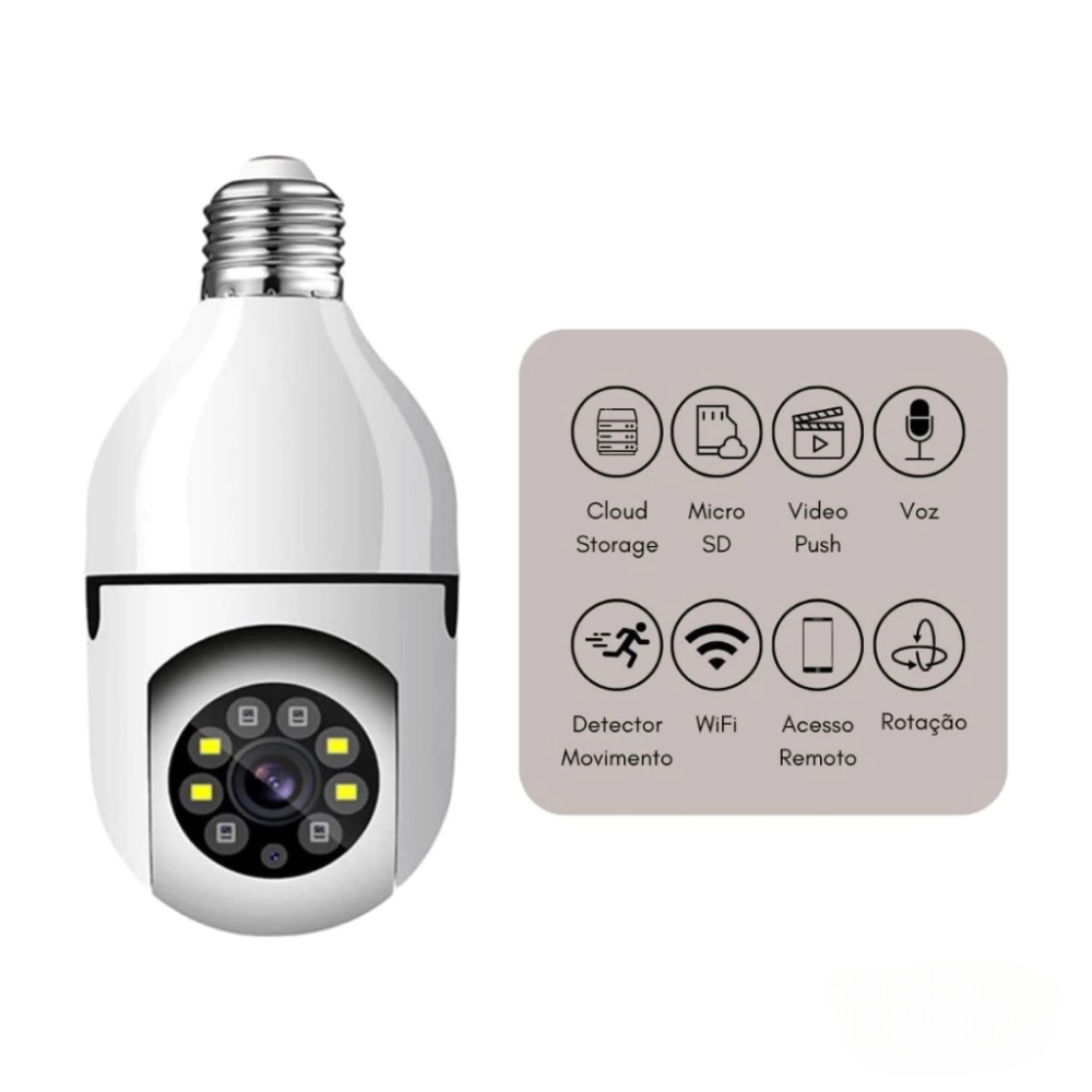 Camera Lâmpada Wifi Ip Segurança Panorâmica Giratória 360 1080P com Visão